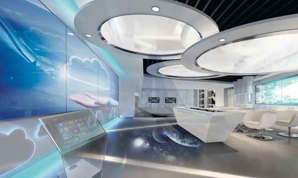 Circular cinerama fusionpProjection/u-shaped video wall (Immersive) BOE igallery video wall/historical evolution wall (corridor) Projection & rotating display interactive wall (experiential) 180 °/270 ° holographic projection on large curtain display (stage)